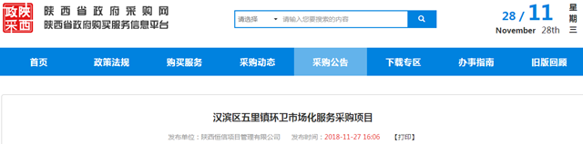 原標(biāo)題:380萬(wàn)/年,陜西省漢濱區(qū)五里鎮(zhèn)環(huán)衛(wèi)市場(chǎng)化項(xiàng)目中標(biāo)公示