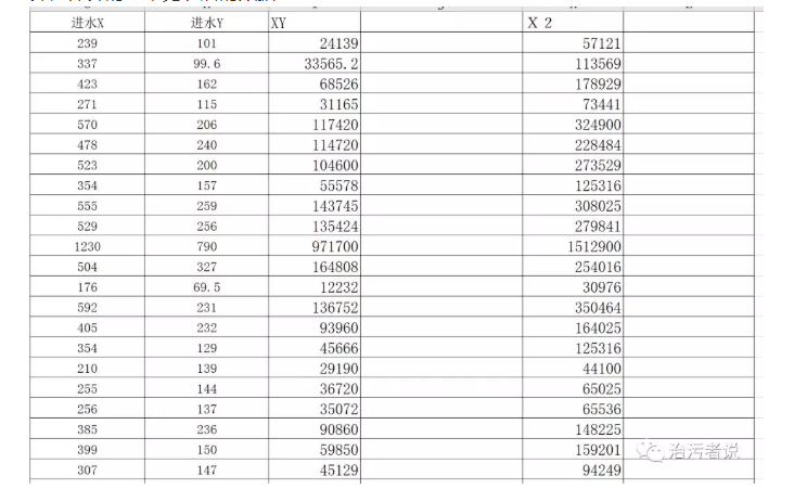 為了驗(yàn)證這個(gè)數(shù)學(xué)計(jì)算方法,數(shù)學(xué)方法要求數(shù)據(jù)樣本更多,更多的數(shù)據(jù)樣本可以反應(yīng)出更準(zhǔn)確的數(shù)值,我們把某廠的2007年的每日的COD和BOD的值進(jìn)行統(tǒng)計(jì)計(jì)算,出于篇幅原因,我們把數(shù)據(jù)表的部分列出來,然后用EXCEL里面的公式進(jìn)行上述的數(shù)學(xué)運(yùn)算,計(jì)算的結(jié)果見表后的數(shù)據(jù):
