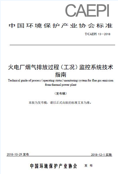 關(guān)于發(fā)布《火電廠煙氣排放過程(工況)監(jiān)控系統(tǒng)技術(shù)指南》(T/CAEPI 13—2018)的公告