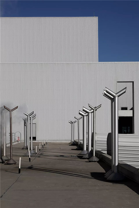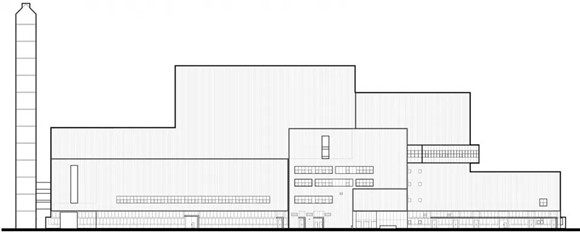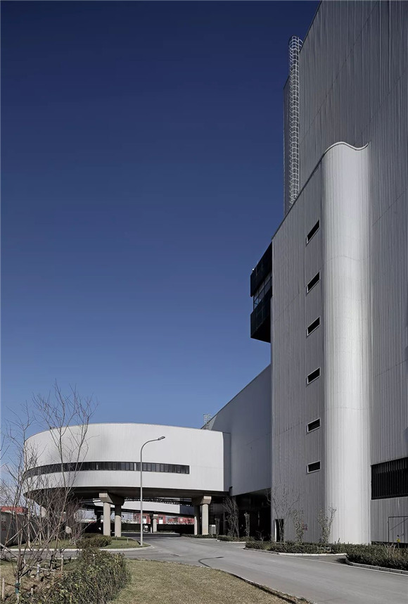 垃圾是人類城市生活的必然產(chǎn)物,垃圾處理中心也成為城市重要的市政公用設(shè)施。焚燒中心主廠房是廠區(qū)內(nèi)體量及高度最大的建筑單體和核心建筑,通過對內(nèi)部工藝和外部圍護系統(tǒng)的整合設(shè)計,建筑體量滿足設(shè)備工藝對空間的要求,使建筑作為一個整體,將垃圾運卸、存放、焚燒、凈化、發(fā)電的工藝流程及空間特征表達出來,并在保證工藝要求和使用功能的前提下,強調(diào)建筑體量的完整性和工業(yè)建筑的力量感、尺度感,選用能夠反映工業(yè)建筑特征的立面建材,形成簡潔、樸素、高效、不過分夸張喧鬧的外觀,展示其獨有的建筑形象,在“方整”的基本形態(tài)基礎(chǔ)上,在建筑轉(zhuǎn)角、主要出入口、屋頂?shù)任恢眠M行了體量的細化處理。