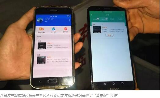 江楊農(nóng)產(chǎn)品市場(chǎng)內(nèi)每天產(chǎn)生的不可食用廢棄物會(huì)被記錄進(jìn)了“食安保”系統(tǒng),市場(chǎng)管理者向收運(yùn)方發(fā)送請(qǐng)求;
