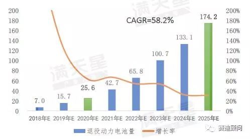 2025年動(dòng)力電池退役量將達(dá)到174.2GWh
