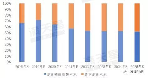 圖2 2018-2025年按類(lèi)型分動(dòng)力電池退役占比預(yù)測(cè)