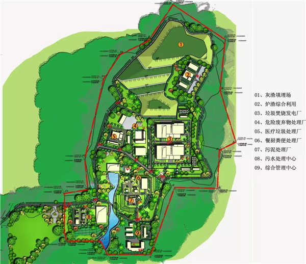 園區(qū)總投資17.16億元,總規(guī)劃占地面積為1225畝,園區(qū)規(guī)劃建設(shè)有6個(gè)廠區(qū),包括:日處理量2000噸的生活垃圾焚燒發(fā)電廠(其中包括園區(qū)路網(wǎng)、飛灰填埋場(chǎng)、爐渣綜合利用廠、綜合污水處理廠等配套設(shè)施),日處理量為200噸的餐廚垃圾處理廠,日處理量為200噸的污泥處理廠,醫(yī)療垃圾處理廠,危險(xiǎn)廢棄物處理廠和糞便處理廠。