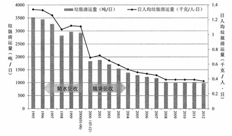 圖 1 臺北市垃圾費隨袋征收前后垃圾清運量及日人均垃圾清運量變化圖(資料來源:臺北市政府環(huán)境保護(hù)局)