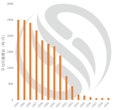 自垃圾分類收集與垃圾費隨袋收費政策相互結(jié)合后,在完善的獎懲機(jī)制配合下,臺北市的垃圾清運量變化明顯(如圖 1),填埋量也從最高每日2501噸,降至59噸,減量97.6%。到2010年,臺北市實現(xiàn)了垃圾零填埋的目標(biāo)。