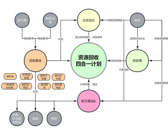 回收基金:督導(dǎo)責(zé)任業(yè)者繳交回收清除處理費,成立基金;運用獎助及補(bǔ)貼機(jī)制,推進(jìn)資源回收處理體系建設(shè);建立有效回收制度,暢通回收處理管道。