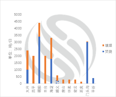 圖 5 2017年北京各區(qū)生活垃圾處理能力匯總(不含堆肥)