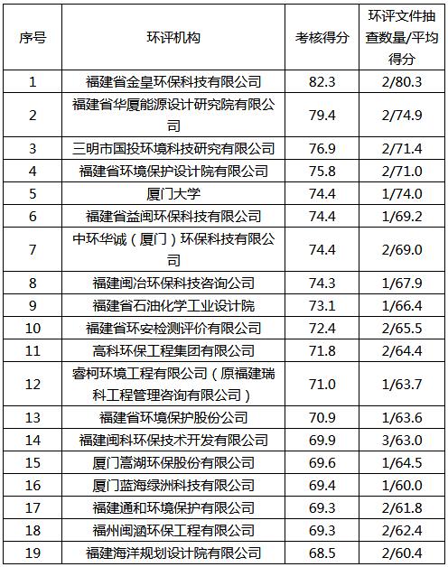 福建省內(nèi)環(huán)評機構(gòu)考核結(jié)果表