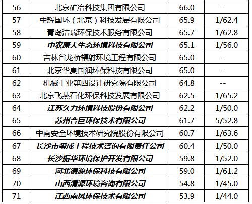 備注:福建中試所電力調(diào)整試驗有限責任公司、國家海洋局第三海洋研究所和福建九邦環(huán)境檢測科研有限公司3家環(huán)評機構(gòu)考核期內(nèi)在福建省無業(yè)績,不參加本次考核。