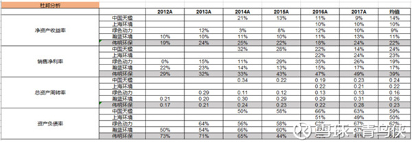 偉明環(huán)保(SH603568)的ROE2012年-2017年均值為22%,遠(yuǎn)超焚燒同行,資產(chǎn)負(fù)債率連續(xù)走低,總資產(chǎn)周轉(zhuǎn)率改善明顯,但跟行業(yè)差距不大,主要依靠較高的凈利率&毛利率。