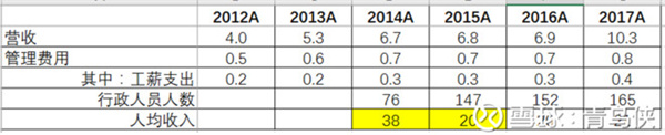 公司管理費(fèi)用里最大的是工薪支出,通過計算人均薪酬(工薪支出/行政人員人數(shù))發(fā)現(xiàn)公司的行政人員薪酬在2015年下滑明顯,對此存在一定疑惑;