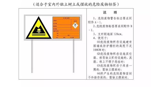 4、室內(nèi)外獨(dú)立擺放或樹立的危險(xiǎn)廢物標(biāo)簽