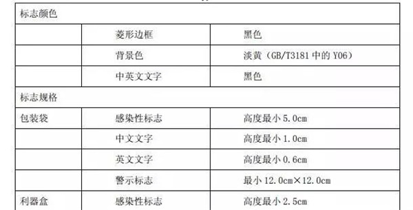 來源:《醫(yī)療廢物專用包裝袋、容器和警示標(biāo)志標(biāo)準(zhǔn)》