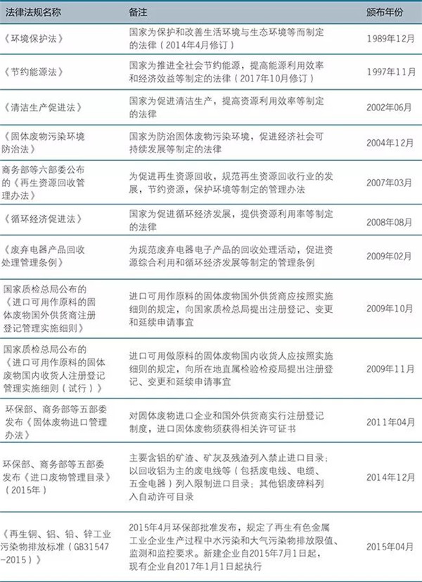 再生鋁行業(yè)屬于資源再生和循環(huán)經(jīng)濟的范疇,行業(yè)的良好發(fā)展具有重大的經(jīng) 濟、社會和環(huán)境意義,是國家大力發(fā)展的行業(yè)之一。近幾年來,我國相繼出臺了大力鼓勵和支持循環(huán)經(jīng)濟、再生金屬行業(yè)發(fā)展的眾多政策性文件。