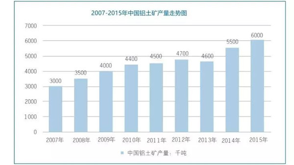 2015年中國鋁土礦產(chǎn)量為6000萬噸,占同期全球總產(chǎn)量的21.9%。按照同期中國鋁土礦資源儲量,中國鋁土礦靜態(tài)可采年限僅為14年,遠低于全球120年的平均水平,加強資源的合理開發(fā)利用是我國鋁土礦產(chǎn)業(yè)乃至整個鋁業(yè)所面臨的重要問題。