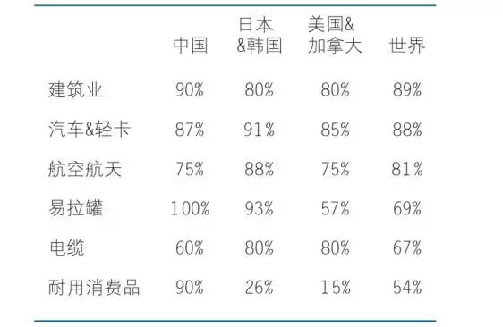 我國再生鋁行業(yè)具有一定的資源基礎(chǔ),中國是全球廢鋁回收率最高的國家。 以易拉罐為例,中國每年的回收率超過99%,而日本和韓國為93%左右,美國僅有57% 。根據(jù)估算,自1954年新中國建立第一座鋁廠以來,至2016年我國共生產(chǎn)原鋁約26,700萬噸,仍然有85%以上正在使用,隨著鋁產(chǎn)品報廢周期到來,廢鋁的庫存量將迅速增加。