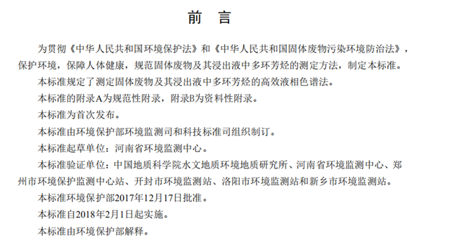 本標(biāo)準(zhǔn)規(guī)定了測(cè)定固體廢物及其浸出液中多環(huán)芳烴的高效液相色譜法。