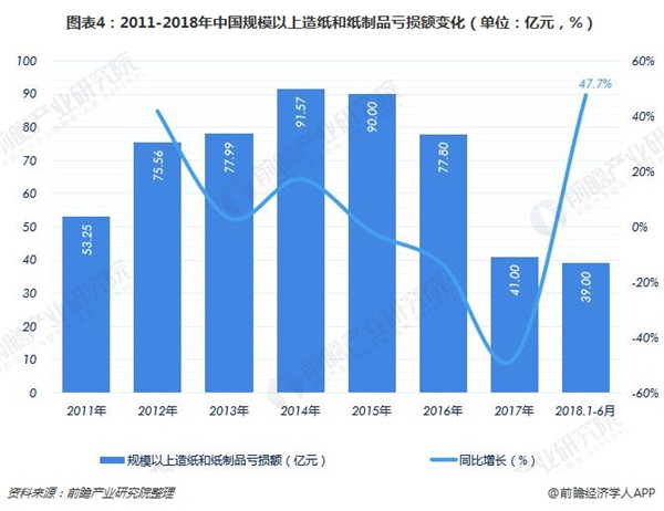 2018年1-6月的虧損額達(dá)到39億元,較上年同期增長47.73%,已接近2017年全面水平,我國造紙企業(yè)正面臨著嚴(yán)峻的考驗。