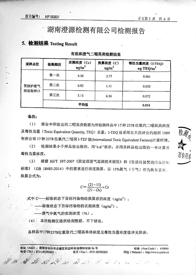 這是武漢嘉恒化工有限公司通過(guò)第三方對(duì)電子垃圾焚燒尾氣檢測(cè)報(bào)告: