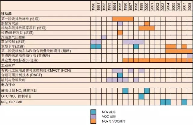 美國(guó)臭氧控制措施匯總。來(lái)源:EPA,2004