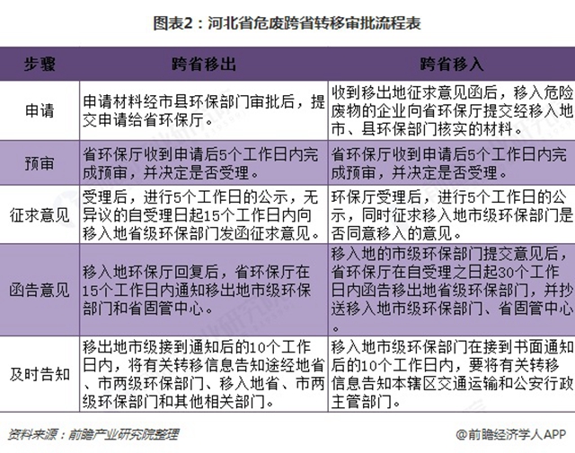 危廢產(chǎn)生量和工業(yè)發(fā)達程度緊密相關(guān),目前全國危險廢物經(jīng)營許可證數(shù)量集中于長三角和珠三角區(qū)域,危廢處理處臵的區(qū)域性比較明顯,且我國對于跨省轉(zhuǎn)移危廢有非常嚴格的限制措施與程序,進一步加強了危廢處理的區(qū)域性,導(dǎo)致產(chǎn)能不匹配問題不能通過危廢轉(zhuǎn)移來解決。以河北省為例,危險廢物轉(zhuǎn)移需要五個審批步驟,同時經(jīng)過省級和市縣級相關(guān)部門同意才可進行轉(zhuǎn)移。