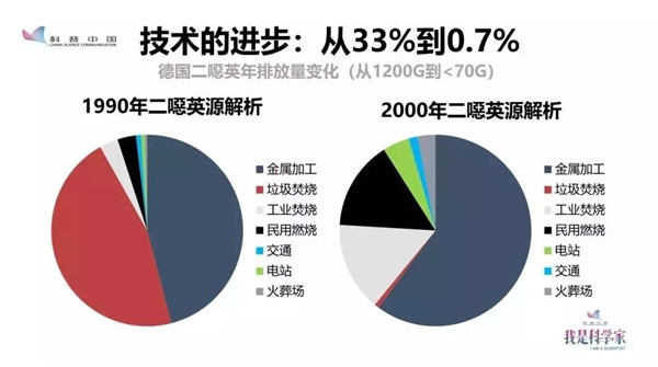 公眾對于污染物質的擔憂、抵抗和集會游行,從某種意義上來說,推動了更嚴格的環(huán)境法律的推出以及環(huán)境標準的提高,以及技術的進步和工藝的改進。1990年到2000年間德國二噁英的源解析給我們提供了證據(jù):在1990年,全德國一年產(chǎn)生大概1200克的二噁英,其中來自垃圾焚燒的大概占33%。隨著技術的進步和標準的提高,到2000年整個德國二噁英的排放量下降到低于70克,其中來自于垃圾焚燒裝置的排放只占了大概0.7%,這是一個非常低的比例。