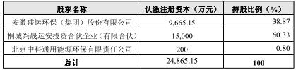原股東:安徽盛運環(huán)保(集團)股份有限公司(簡稱“乙方一”)、北京中科通用能源環(huán)保有限責(zé)任公司(簡稱“乙方二”)、桐城興晟運安投資合伙企業(yè)(有限合伙)(簡稱“丁方”)