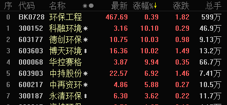 今年三季度環(huán)保股凈利潤同比增長排名前十
