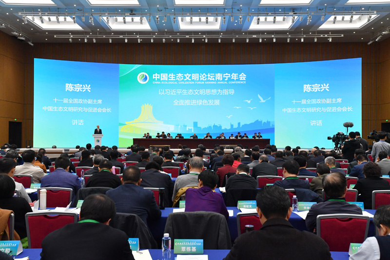 12月15日至16日,中國(guó)生態(tài)文明論壇年會(huì)在廣西壯族自治區(qū)南寧市召開。本次會(huì)議以“生態(tài)文明 綠色發(fā)展——深入學(xué)習(xí)貫徹習(xí)近平生態(tài)文明思想 建設(shè)天藍(lán)、地綠、水清的美麗中國(guó)”為主題。十一屆全國(guó)政協(xié)副主席、中國(guó)生態(tài)文明研究與促進(jìn)會(huì)會(huì)長(zhǎng)陳宗興,生態(tài)環(huán)境部黨組書記、部長(zhǎng)李干杰出席開幕式并講話,廣西壯族自治區(qū)黨委副書記、人民政府主席陳武,廣西壯族自治區(qū)黨委常委、南寧市委書記王小東出席開幕式并致辭。生態(tài)環(huán)境部副部長(zhǎng)黃潤(rùn)秋主持開幕式。
