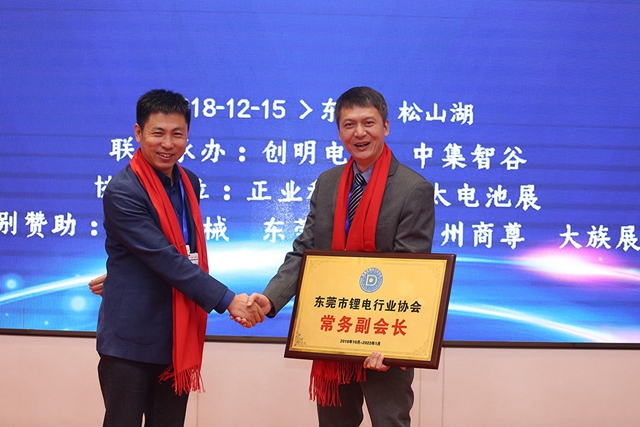 2018年度東莞市鋰電行業(yè)協(xié)會突出貢獻(xiàn)獎:正業(yè)科技與創(chuàng)明電池