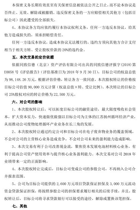 12月18日,格林美發(fā)布公告,公司將持有揚州寧達貴金屬有限公司60%股權(quán)中的合計25%股權(quán)分別轉(zhuǎn)讓給揚州市江都區(qū)政府投資平臺公司揚州市龍川產(chǎn)業(yè)投資發(fā)展有限公司、揚州創(chuàng)美企業(yè)管理合伙企業(yè)(有限合伙)。轉(zhuǎn)讓后公司持有目標公司35%股權(quán)。