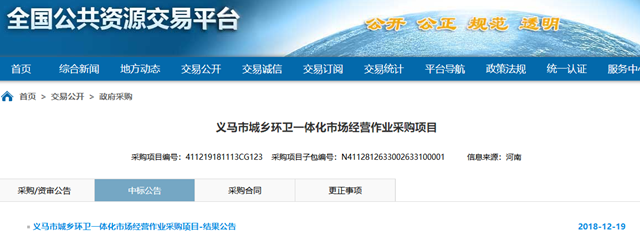 原標(biāo)題:1535.76萬/年,龍馬環(huán)衛(wèi)中標(biāo)河南義馬市城鄉(xiāng)環(huán)衛(wèi)一體化項目