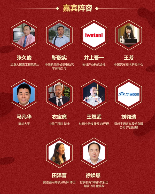 本次峰會主席將由中國航天新長征電動汽車有限公司航天專家靳殷實擔任,屆時,中國工程院院士衣寶廉、加拿大三院院士張久俊、清華大學(xué)教授馬凡華、中國汽車技術(shù)研究中心首席專家王芳、工信部賽迪工業(yè)和信息化研究院田小田、巖谷產(chǎn)業(yè)株式會社央研究所部長井上吾一、鄭州宇通客車股份有限公司劉鈞瑞、德國林德氣體王煜武等數(shù)十多位業(yè)內(nèi)領(lǐng)軍人物將發(fā)表主題演講。