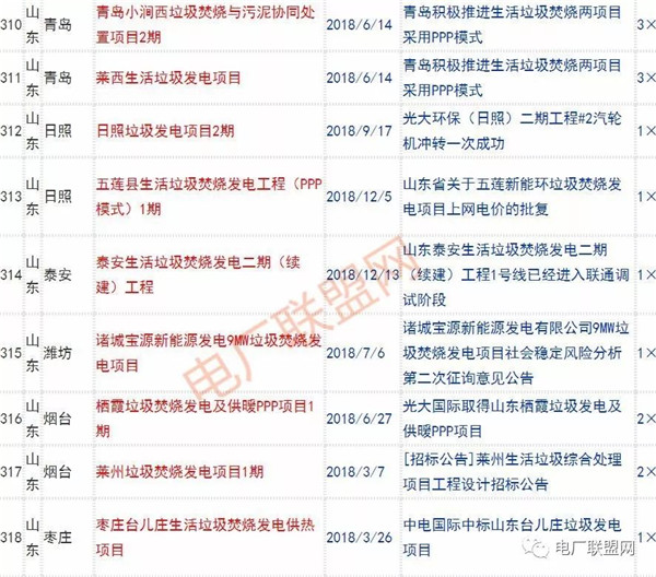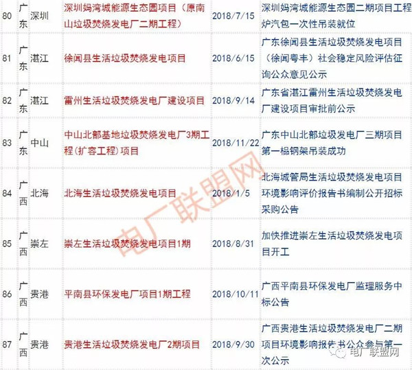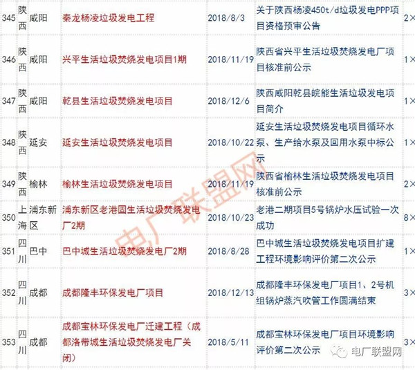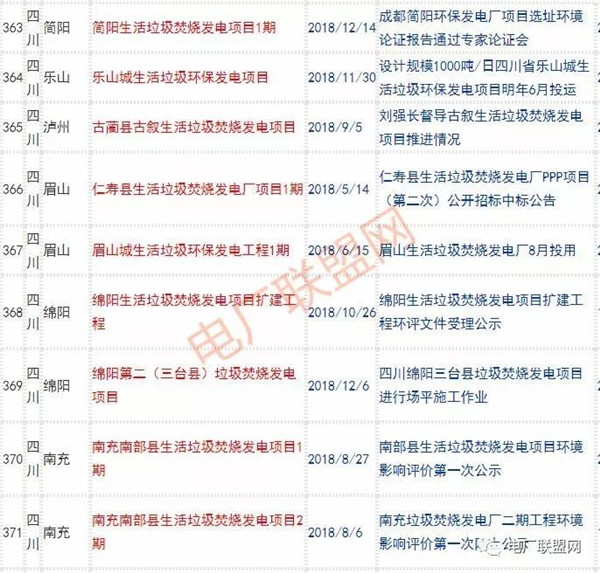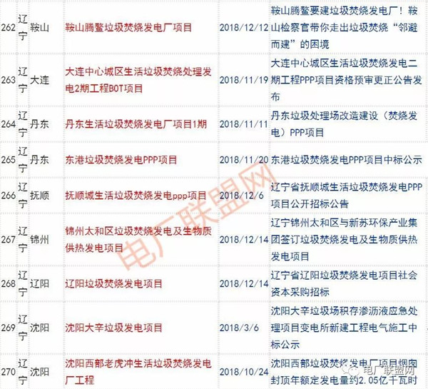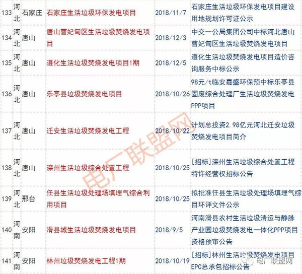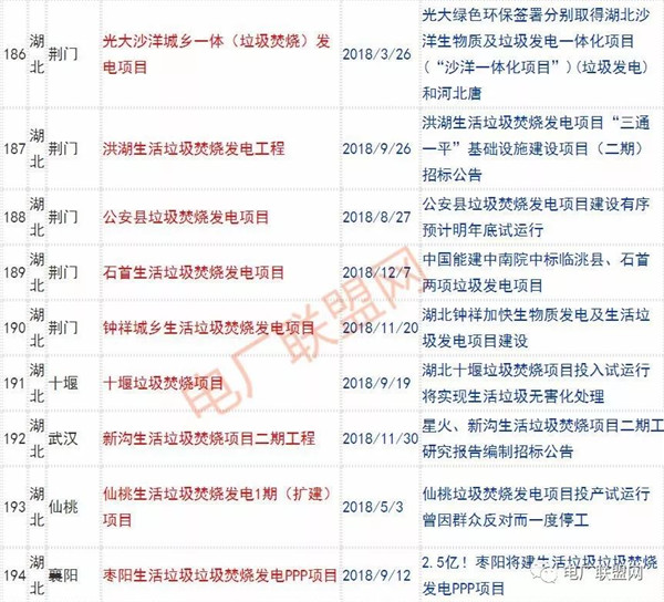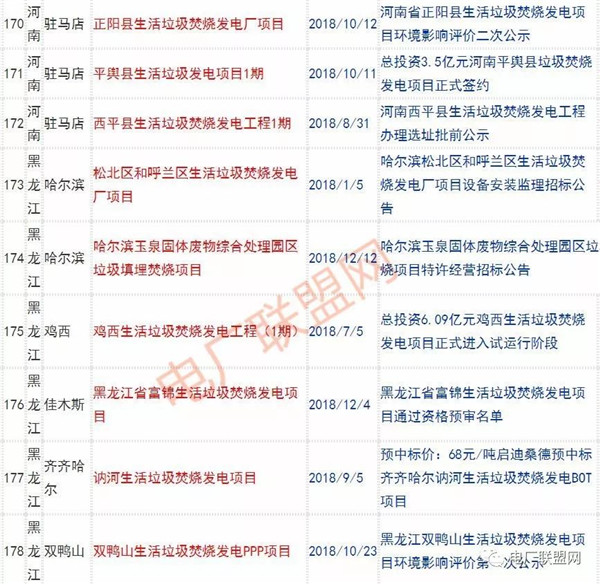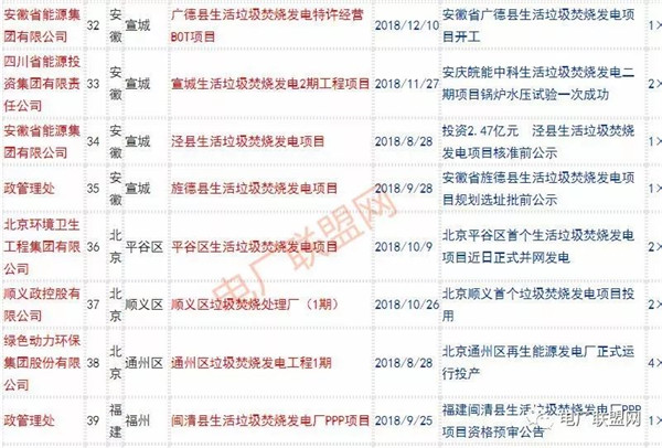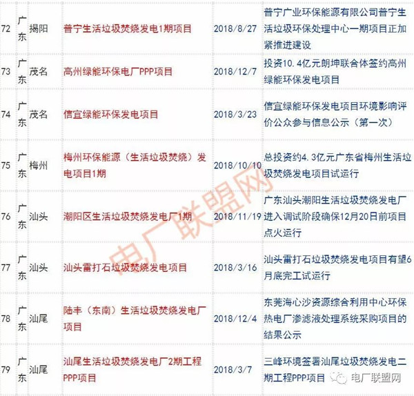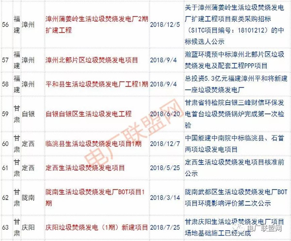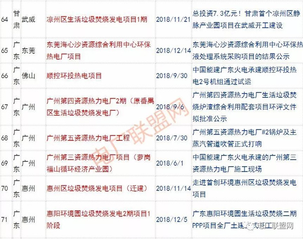 2018年新投入運行的生活垃圾焚燒廠超過70座,在建項目166座,擬建項目201座.具體項目名單如下: