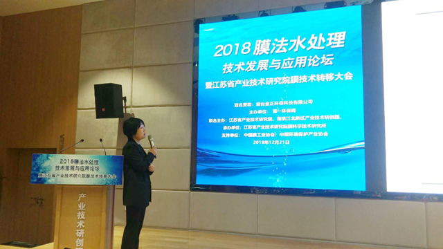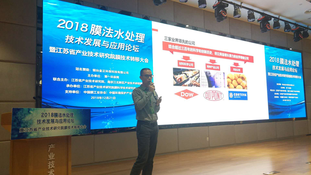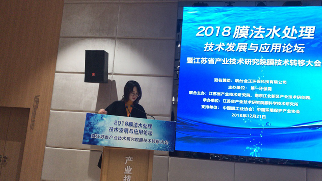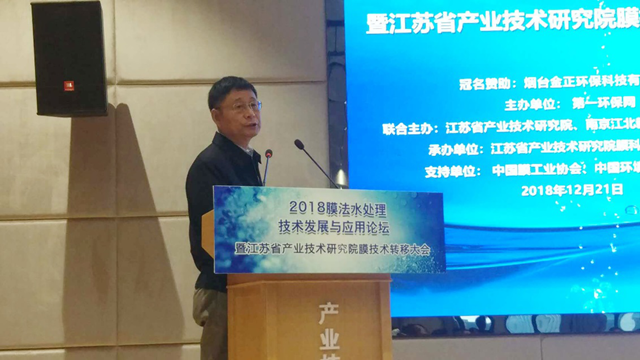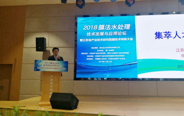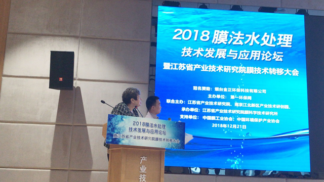 2018年12月21日,由第一環(huán)保網(wǎng)主辦,江蘇省產(chǎn)業(yè)研究院、南京江北新區(qū)產(chǎn)業(yè)技術研究園聯(lián)合主辦,江蘇省產(chǎn)業(yè)技術研究院膜科學技術研究所承辦,中國膜工業(yè)協(xié)會、中國環(huán)境保護產(chǎn)業(yè)協(xié)會共同支持,煙臺金正環(huán)??萍加邢薰惊毤屹澲?ldquo;2018膜法水處理技術發(fā)展與應用論壇暨江蘇省產(chǎn)業(yè)技術研究院膜技術轉移大會”在江蘇省南京市江北新區(qū)產(chǎn)業(yè)技術研創(chuàng)園騰飛大廈盛大召開。