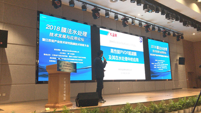 最后,來自南京久盈膜科技有限公司的周利躍部長,重點介紹了高性能PVDF膜的技術特點及優(yōu)勢所在,指明了該技術在水處理方面的重要作用。