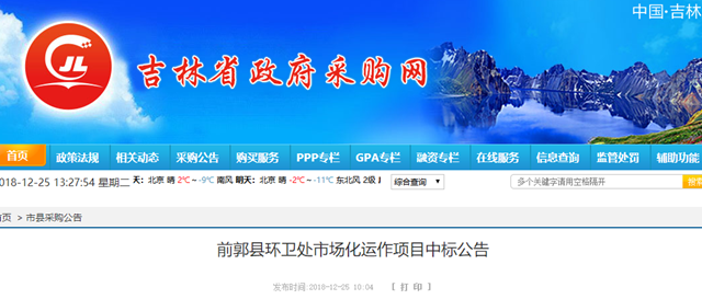原標(biāo)題:中聯(lián)環(huán)境中標(biāo)2.82億吉林省前郭縣環(huán)衛(wèi)市場化項(xiàng)目
