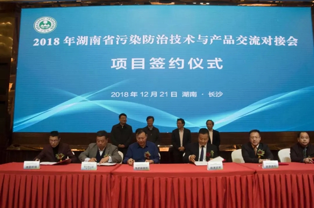 2018年12月21日,由湖南省生態(tài)環(huán)境廳、省人大環(huán)資委、省發(fā)改委、省工信廳、省科技廳主辦,湖南省環(huán)保產(chǎn)業(yè)協(xié)會協(xié)辦的2018年湖南省污染防治技術(shù)與產(chǎn)品交流對接會在長沙舉行。湖南省人民政府副省長陳文浩出席并講話,省生態(tài)環(huán)境廳、省人大環(huán)資委、省發(fā)改委、省工信廳、省科技廳等相關(guān)部門領(lǐng)導(dǎo)參加了對接會。對接會上,多個重點項目簽署環(huán)保供需合同,現(xiàn)場簽約額逾20億元。
