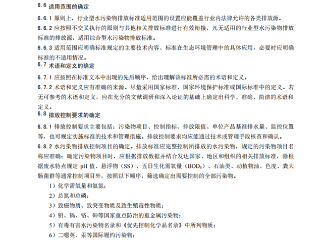 本標(biāo)準(zhǔn)規(guī)定了制訂行業(yè)型國家水污染物排放標(biāo)準(zhǔn)的基本原則和技術(shù)路線、主要技術(shù)內(nèi)容的確定、標(biāo)準(zhǔn)實(shí)施的成本效益分析、標(biāo)準(zhǔn)文本結(jié)構(gòu)和標(biāo)準(zhǔn)編制說明主要內(nèi)容等要求。