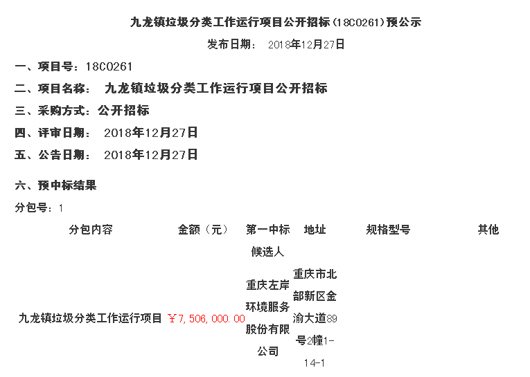 原標題:九龍鎮(zhèn)垃圾分類工作運行項目公開招標(18C0261)預(yù)公示
