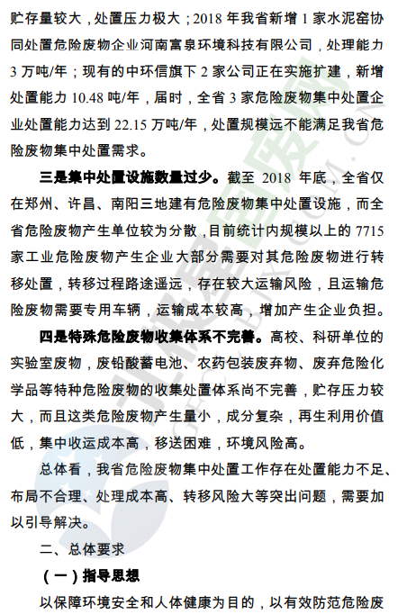 為深入貫徹習近平生態(tài)文明思想,全面落實《中共河南省委河南省人民政府關于全面加強生態(tài)環(huán)境保護堅決打好污染防治攻堅戰(zhàn)的實施意見》(豫發(fā)﹝2018﹞19號),根據(jù)《河南省人民政府印發(fā)河南省污染防治攻堅戰(zhàn)三年行動計劃(2018—2020年)的通知》(豫政﹝2018﹞30號)要求,我廳起草了《河南省危險廢物集中處置設施建設布局規(guī)劃指導意見》,現(xiàn)印發(fā)給你們,請結合實際,認真抓好落實。