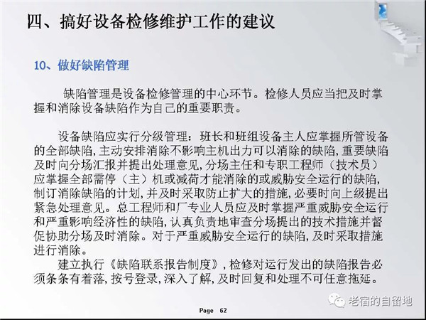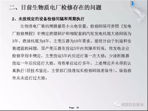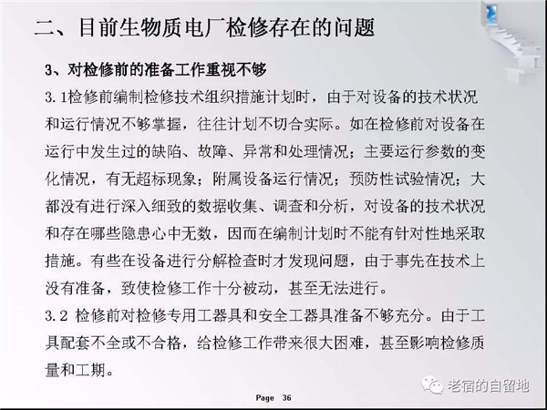 隨著國家對生物質能開發(fā)總是和支持,近幾年生物質發(fā)電得以迅猛發(fā)展。在企業(yè)運營過程中,比較突出的問題是有的企業(yè)對設備檢修維護工作重視不夠,導致設備故障率高、運行周期短、效率低,個別單位的設備甚至到了不破不修,不壞不修的狀態(tài)、嚴重影響了安全經濟運行,對企業(yè)生存發(fā)展造成了重大影響。下面就生物質發(fā)電企業(yè)檢修管理和重點關注方面進行交流。