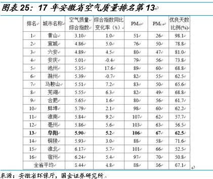 我們以阜陽(yáng)市為例,2017年大氣污染防治工作考核不合格。2018年3月6日,安徽省政府辦公廳公布2017年度大氣污染防治工作考核結(jié)果。黃山市、合肥市為優(yōu)秀等次,池州市、阜陽(yáng)市、淮南市、亳州市為不合格等次??己瞬缓细竦乃某鞘袑⒚媾R環(huán)評(píng)限批,即新增大氣污染物排放建設(shè)項(xiàng)目將被暫停審批。