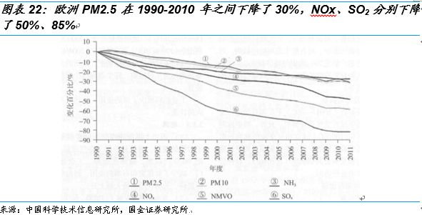 我們對(duì)比歐洲幾十年的治理之路,1952年倫敦?zé)熿F事件后開始大氣治理。1975年倫敦的霧霾天氣由每年幾十天減少到了15天,1980 年降到5天。整個(gè)歐洲的PM2.5的排放量從1990年到2010年的20年間下降了30%?!洞蜈A藍(lán)天保衛(wèi)戰(zhàn)三年行動(dòng)計(jì)劃》要求5年間PM2.5未達(dá)標(biāo)地級(jí)及以上城市濃度比2015年下降18%以上,即使我國(guó)有集中力量辦大事的優(yōu)勢(shì),但空氣改善任務(wù)依然艱巨,時(shí)間緊任務(wù)重。