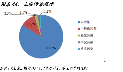 根據(jù)國(guó)土資源部數(shù)據(jù),最新全國(guó)耕地面積為 20.27 億畝。全國(guó)土壤污染狀況調(diào)查公報(bào)中,全國(guó)土壤總的超標(biāo)率為 16.1%;耕地土壤點(diǎn)位超標(biāo)率為 19.4%,其中輕微、輕度、中度和重度污染點(diǎn)位比例分別為 13.7%、 2.8%、 1.8%和 1.1%,其中重度、中度污染耕地區(qū)域面積高達(dá) 5878 萬畝。