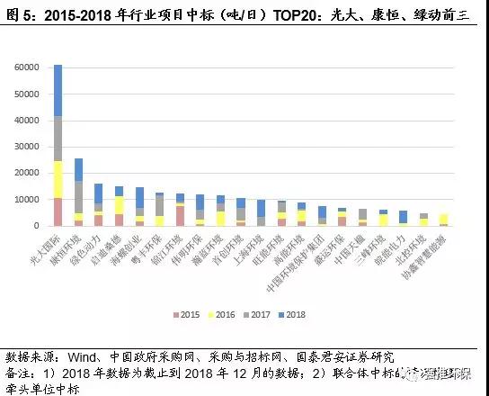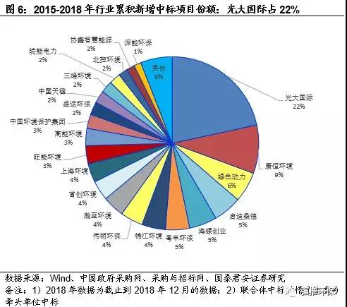 新增中標(biāo)項(xiàng)目向龍頭公司集中。分公司來看,2015-2018年行業(yè)新增項(xiàng)目總產(chǎn)能前三的公司分別為光大國際、康恒環(huán)境、綠色動(dòng)力,分別占有新增中標(biāo)項(xiàng)目總量的22%、9%、6%。