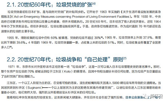 一,“自己處理”的原則。報告簡要介紹了發(fā)生在1970年代的日本國內(nèi)的“垃圾戰(zhàn)爭”和由此引發(fā)并逐漸形成的地方自治體“自己處理”垃圾的原則。筆者認為,盡管現(xiàn)實中日本所謂的“自己處理”的原則更多體現(xiàn)在了每個市在自己的轄區(qū)內(nèi)焚燒垃圾,但從根本上而言,它有助于讓各地方公眾及其政府明確自身的責任,同時不隨意或強勢地要求其他地方替自己承擔責任。在這樣的基礎上,或許能夠倒逼更有效的垃圾減量和分類行動,以及更公平合理地選擇垃圾處置場地。