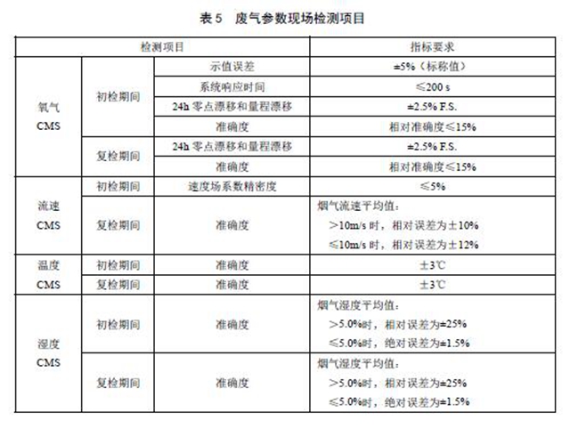 廢氣參數(shù)(氧氣、流速、煙溫、濕度)的性能指標(biāo)要求應(yīng)符合HJ 76 相關(guān)要求。