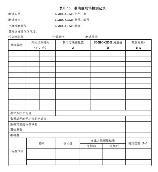b) 當(dāng)校驗(yàn)結(jié)果不符合6.2.3 中準(zhǔn)確度指標(biāo)要求時(shí),則應(yīng)擴(kuò)展為評(píng)估NMHC-CEMS 的準(zhǔn)確度校正,直至達(dá)到要求,所取樣品數(shù)不少于9 對(duì)。